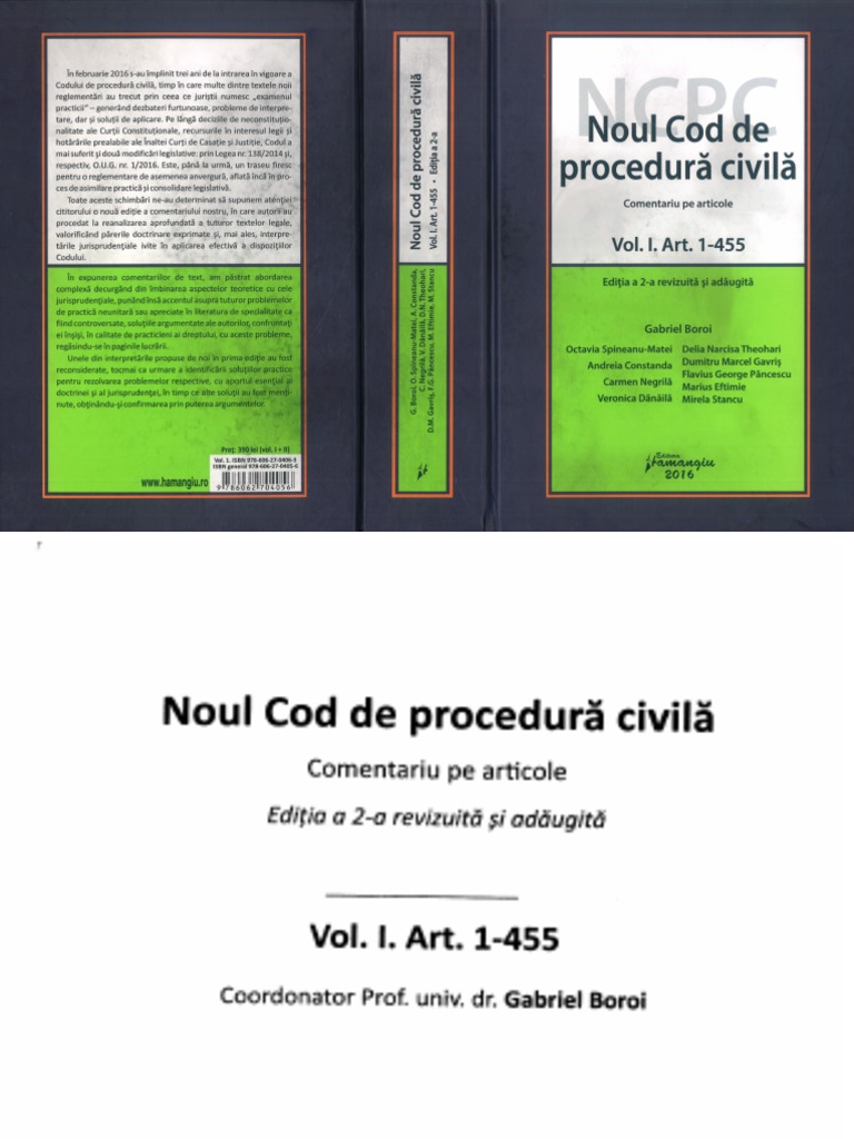 Noua lege exclude posibilitatea, atat de des intalnita in practica, ca partea sa conceapa si sa semneze o cale de atac, si sa mearga in fata instantei pentru a in cazul dispozitiilor analizate, exista tentatia de a crede ca norma de procedura care instituie obligativitatea semnarii si sustinerii cailor extraordinare. Briciu 2017 anul semestrul seria cursul teoria. Indexul plasat la finalul codului faciliteaza utilizarea acestuia, indicand sediul materiei pentru diverse institutii importante in domeniul procedurii civile si asigurand o de asemenea, in extras, cititorul va regasi dispozitii ale legii pentru punerea in aplicare a noului cod de procedura civila (legea nr.